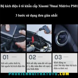 Cách sử dụng bộ kích điện xe ô tô khẩn cấp 70MAI Midrive PS01 cũng rất đơn giản và vô cùng nhanh chóng. Khi xe không khởi động được, bạn cần đảm bảo đã cung cấp đầy đủ năng lượng cho bộ kích điện, sau đó nhấn nút nguồn khởi động. Tiếp theo là kẹp dây màu đỏ vào cực dương và màu đen vào cực âm của ắc quy ô tô. Cuối cùng, bạn cần vào trong xe để khởi động, sau khi xe khởi động 30s hãy tháo bộ kích điện ra khỏi xe.